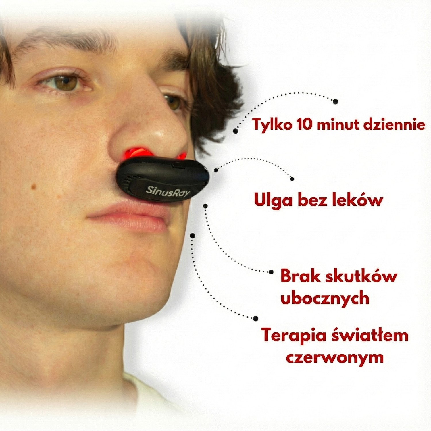 Bez obaw! SinusRay, wykorzystujący zaawansowaną terapię czerwonym światłem (Red Light Therapy), to szybkie i skuteczne rozwiązanie przynoszące ulgę przy przeziębieniu i zapaleniu zatok.